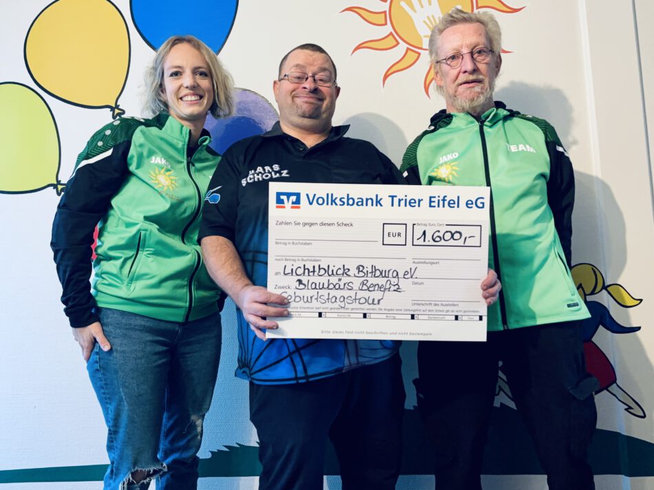 Bei zahlreichen Darts-Spielen und -Turnieren zwischen Bitburg und Gerolstein war er am Start und hatte immer eine unserer Spardosen im Gepäck. Damit sammelte er bei jedem Spiel Spenden seiner Darts-Mitspielerinnen und -spieler zu unseren Gunsten. Der Höhepunkt war ein Benefizturnier zu seinem Geburtstag mit anschließender Feier.